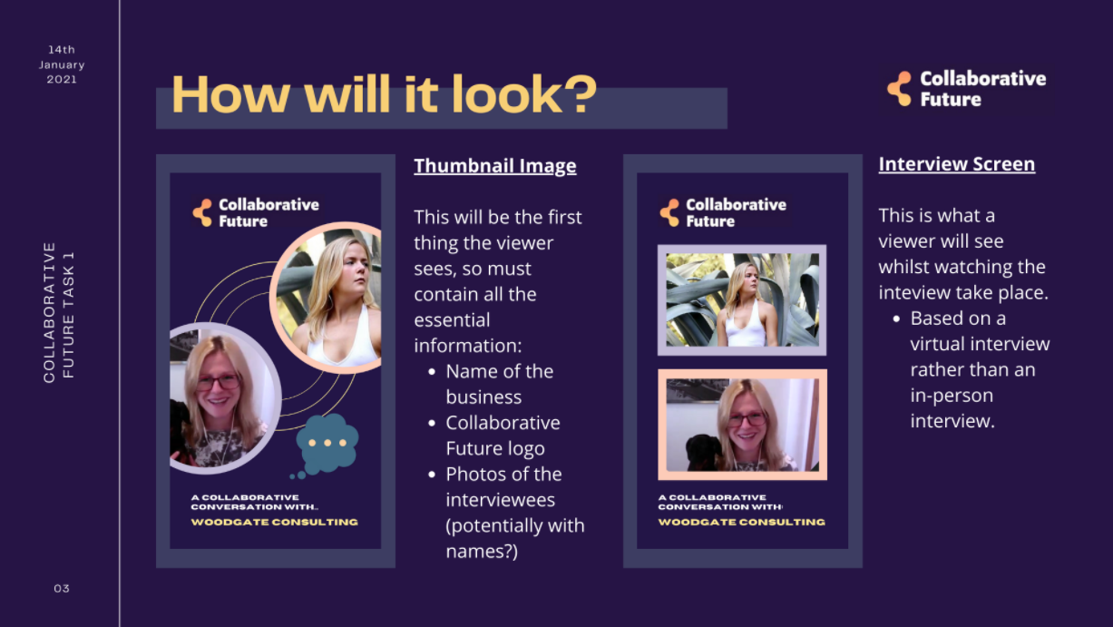 Anne-Marie, our 2021 intern created a series of social media assets for Instagram following Collaborative Futures branding, with engaging accompanying copy. She also pitched a podcast idea as a spin-off from these assets.